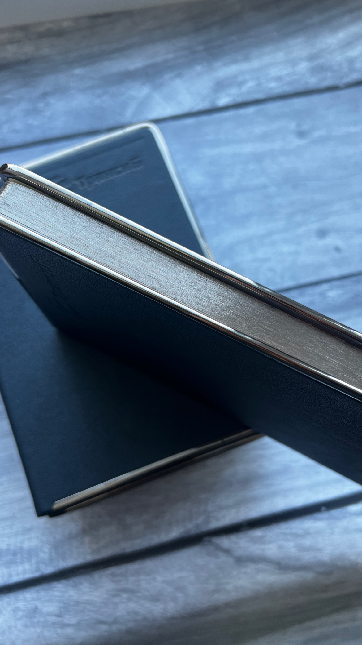 Ежедневник формата А5, серебрянный срез, металлические уголки, нанесение логотипа технологией (блинтование)